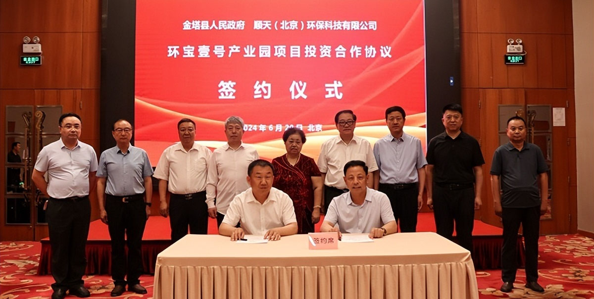 李巖副縣長、甄成君董事長分別代表金塔縣政府和順天(北京)環??萍加邢薰竞炗啞?ldquo;環寶壹號產業園項目”...